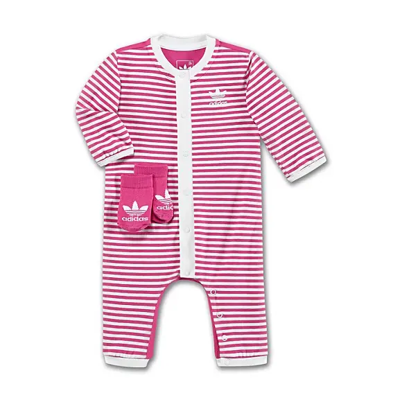 Welcome the new addition with this adidas Originals Gift Set, featuring a one-piece romper and matching socks. The romper has a sleepy-time Trefoil character on the back, while the front bristles with fun in vibrant stripes.
